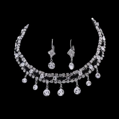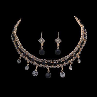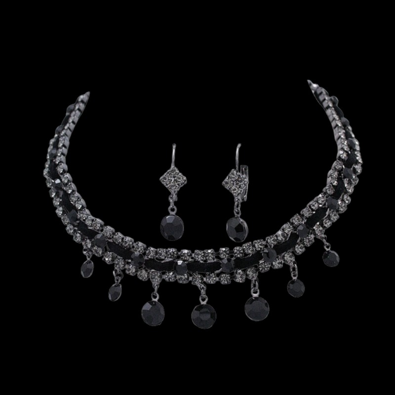 Necklace + Earring set with Swarovski Jet and Black Diamond crystals.
