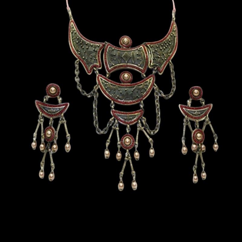 Measurement: necklace L220mm, earrings L85xW32mm, pendant L130xW125mm.