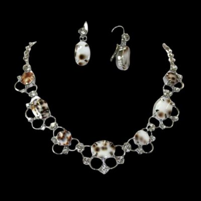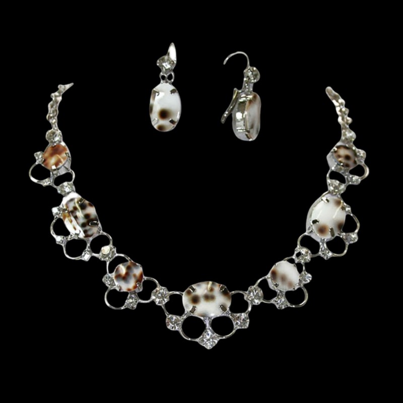 Swarovski Crystals/Tiger Shell Necklace + Earrings Set