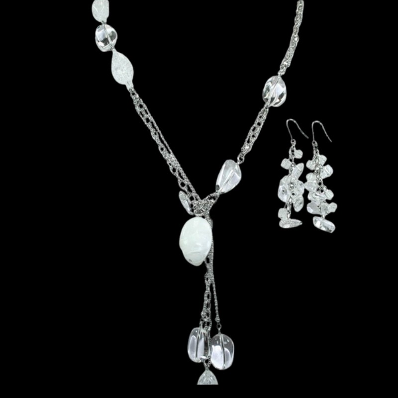 Brazilian cracked crystals, Brazilian clear crystals, Brazilian Polished Conch shell heads are all used in the making of this beautiful necklace + earring set. All materials are hand-polished, with top quality polishing technique. The materials have no pin holes, and have gorgeous natural colouring and shine. The natural grain & texture are simply magnificent.
