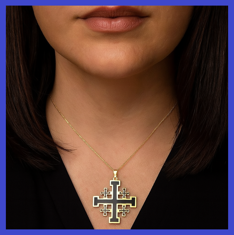 Stainless Steel Gold and Black Jerusalem Cross Pendant 31x40mm